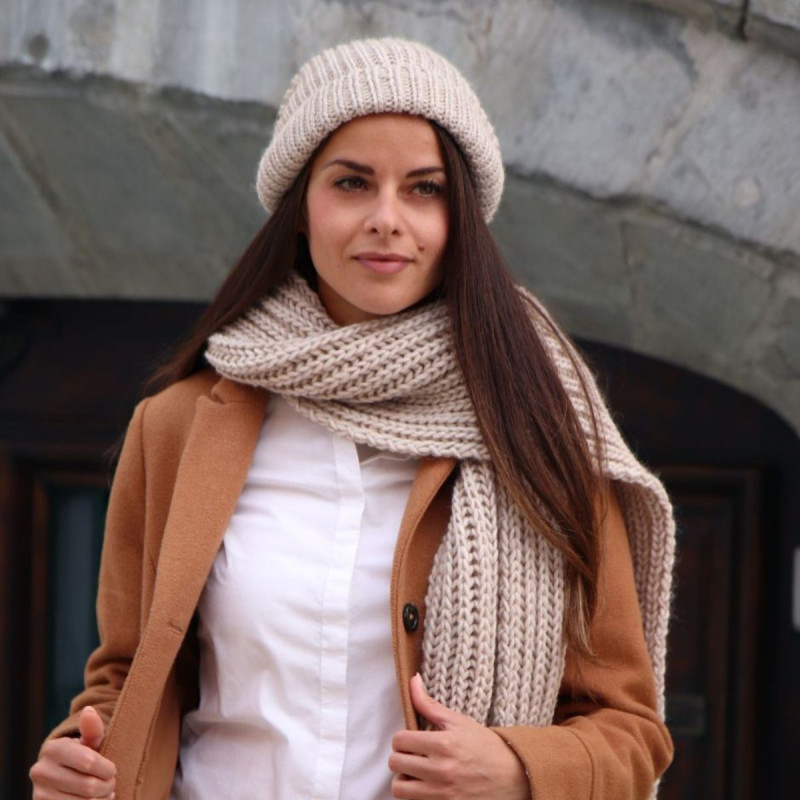Enveloppez-vous dans la maille chaude et volumineuse de l'écharpe Colombe : son esprit côtelé effet fait-main et ses grandes dimensions (28x175cm) font de cet accessoire tendance une protection idéale pour l’hiver.