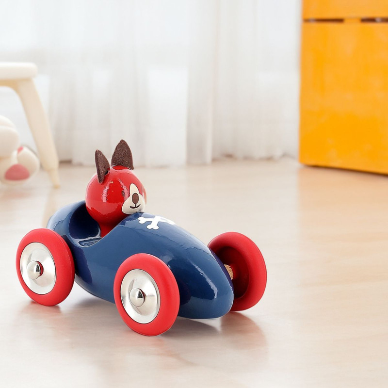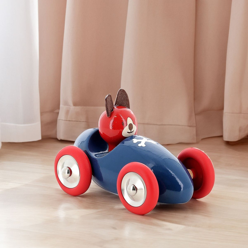 La voiture Lucien le chien de Vilac, une voiture en bois laqué idéale dès 1 an. Fabriquée en France elle sera un parfait premier jouet d'éveil en bois.